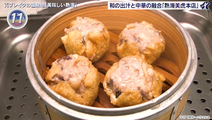 東京で食通たちを魅了した中華の名店が熱海に移転。中華の達人・五十嵐美幸さんが営む。現在、五十嵐さんが挑戦しているのが出汁を使った中華。出汁醤油や魚粉を合わせて作る坦々麺やシュウマイと一緒に添えられる出汁辛子など、和と中華の見事な融合を楽しめる。