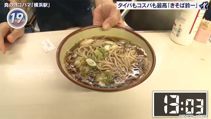 ファンの間で「ハマの4大立ち食い蕎麦」の1つに数えられる人気店。つゆには鰹節・鯖節・昆布出汁を使用し、ハマっ子の好みに合わせて少し甘めに仕上げている。