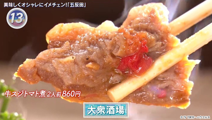 昭和58年創業の名物酒場。人参やジャガイモなど野菜がゴロゴロ入った「牛スジトマト煮」は、お店の看板メニュー。リーズナブルに美味しい宴を楽しめる。