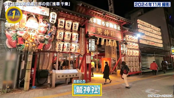 毎年11月には江戸三大酉の市の1つ「浅草 酉の市」が開かれる。社務所には日本一の江戸飾り熊手が飾られ…