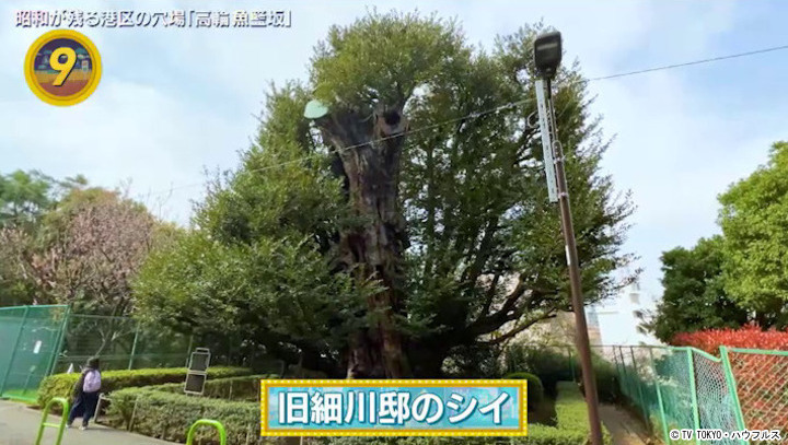 熊本藩細川家の下屋敷の跡地の残るシイの木。樹齢は約400年以上といわれ、東京都指定天然記念物になって…