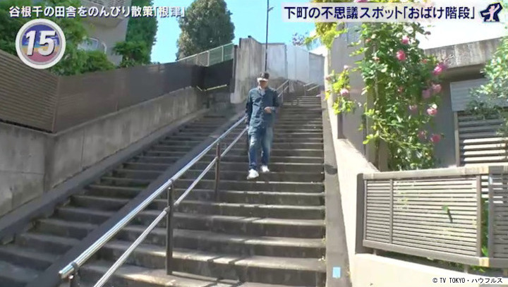 1番下の段が高さ2cm程しかなく、段数を数え忘れてしまうことがあるため、上りと下りで段数が1段違うことがある不思議な階段。かつては幅が狭く、薄暗い石段だった。
