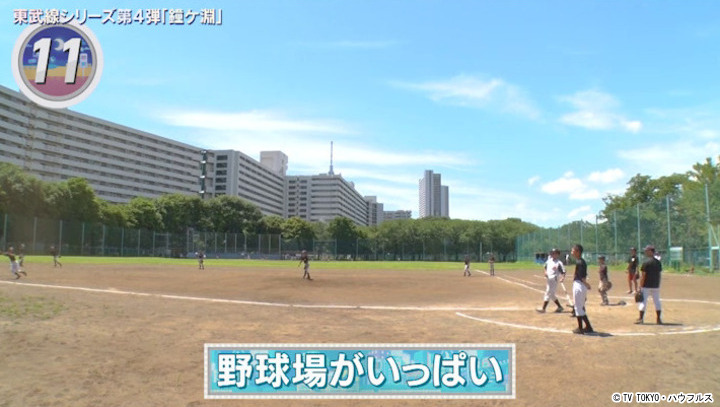 週末の鐘ケ淵周辺の荒川の河川敷では、少年野球の練習や試合をよく目にする。今回のエリアにはサッカー場よりも野球場の方が多く、鐘ヶ淵では今も野球の人気が根強い。