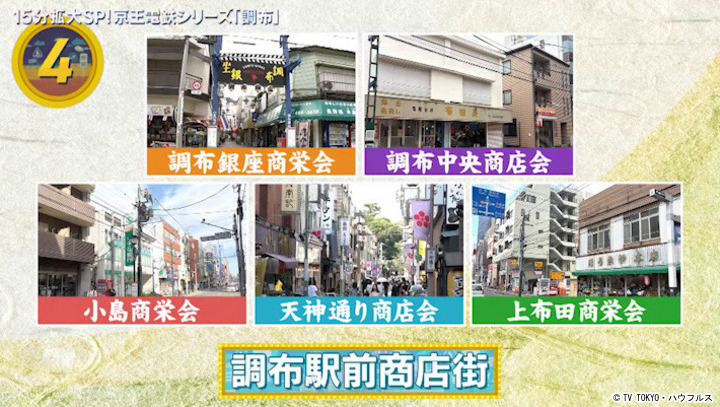 調布駅周辺にある「調布銀座商栄会協同組合」、「小島商栄会」、「天神通り商店会」、「上布田商栄会」、「…