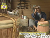最盛期には1500人もの職人が休みなく作り続けた醤油樽ですが、昭和40(1965)年を境にガラス瓶に取って代わられ、同時に殆どの職人がこの街から姿を消してしまいました。そんな中、玉ノ井芳雄さんは伝統を守り続けるただひとりの職人です。現在、大きな木樽作りは体力を要する為、ミニチュアの樽に熟練の技を注ぎ込んでいます。「樽の醤油さし」は、単なるインテリアに留まらず、醤油さしとしても使用可能です。