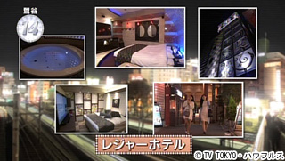 鶯谷駅の北口を出た一画に68軒もある。カップル用のホテルは、近年、そのイメージを一新している。内装や設備を充実させ、スタイリッシュなホテルとなっている。