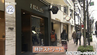 高級時計店が軒を連ねる並木通り。時計の聖地、チューリッヒの「バーンホフ通り」に似ているといわれている。並木通りは時計好き達の桃源郷。ということで、名付けて「時計ストリート」。
