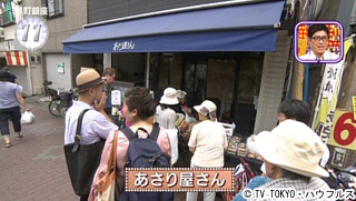 砂町銀座の名物主人が営むあさり専門店。大ぶりで旨味が濃いという浦安沖のあさりを扱う。店主が砂町銀座で商いを始めたのは29歳の頃。はじまりは、漁師のご主人が採ったあさりの行商だった。幼子を背負い、冬の日でも、冷たい路上に座り続けたという。8年前には、念願だったお店を開き、今では背負われていた息子さんも手伝っている。自慢は、あさりの出汁で炊く、炊き込みごはん。ふっくらとした身もたっぷり混ぜ込んだ浦安伝統の一品。