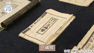三嶋大社の東に構える河合家。三嶋大社の命により、代々この河合家だけが発行を許されていたのが三嶋暦。これは、旧暦時代の代表的なカレンダー。仮名文字で印刷された日本最古の暦といわれる。日付などに加えて、いわゆる占いのような日ごとの吉凶が記されていた。三嶋大社を信仰していた源 頼朝が三嶋暦を正式な暦に採用したこともあり、三島の名は全国に広まり、街の発展にも深くかかわった。