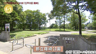 広大な園内には、爽快なる芝山や、テニスコートなどのスポーツ施設、さらにはバーベキュー広場もあり、週末には家族連れで賑わう。