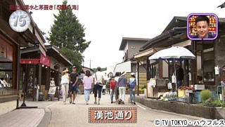 忍野八海のひとつ、「湧池」へ続くおよそ100mの通り、そこには、地元の野菜や手焼き煎餅など、10軒ほどのお土産屋さんが並ぶ。八海巡りの合間はこの通りで一休みがおススメ。