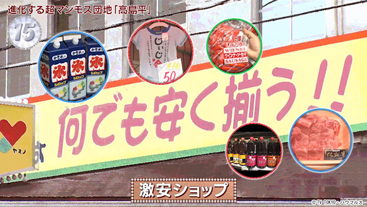 西高島平駅の北側には、流通の拠点が集まっている。そのため、街にはお得なお店がいっぱい。団地のお祭りや運動会など、一年中イベントだらけの高島平では、大量に安く買えるこれらのお店が重宝されている。