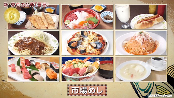 コスパが最強と言われる海鮮丼が有名。店内は「一般客」と「市場関係者」の席に分かれている。一般客のほとんどが海鮮丼を選ぶのに対し、市場関係者はもっぱら定食を選ぶ。仲卸売場で働く人々は低温環境なので、食事は温かいものを好むのだそう。