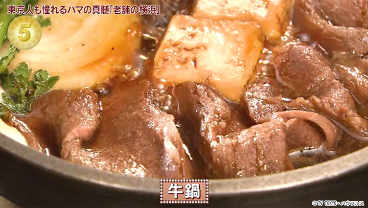 牛鍋の元祖と言われる、明治元年創業の老舗。吉川英治など横浜ゆかりの文豪にも愛された。分厚くサイコロ状にカットした牛肉を味噌ダレで煮る独特な牛鍋は、創業者の工夫により始まった。