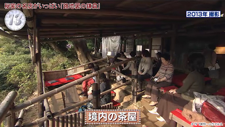 円覚寺境内にある甘味処。高台に作られた風を感じる気持の良い席からは、北鎌倉の街並みが望める。名物の「ところてん」は、食べれば福を呼ぶと噂。