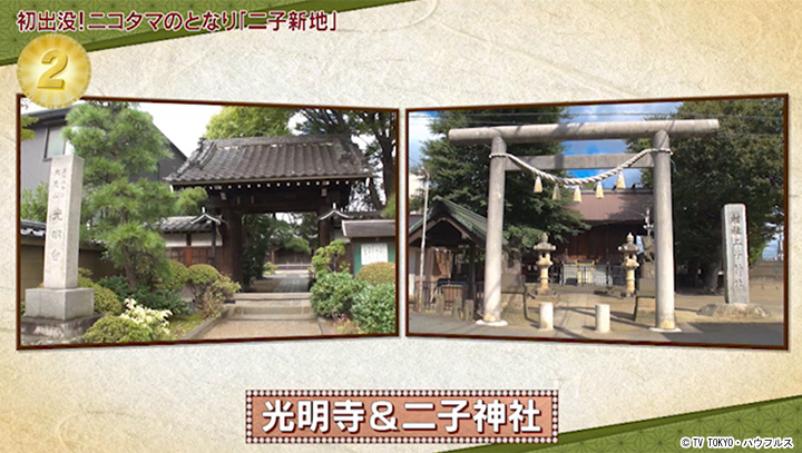 寛永18年創建。境内には、不思議な形の巨大なアートが鎮座しているが、これは芸術家岡本太郎の作品。二子新地は、太郎の母親で歌人岡本かの子の出生地だったため、母の功績を称えた文学碑を作った。