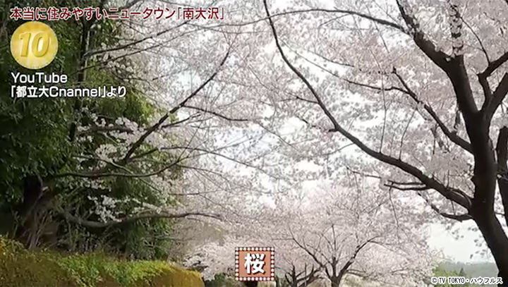 長池公園沿いの陽光桜の並木や、都立大沿いの桜のトンネルなど、春には桜が街中を彩るのが地元住民の自慢。2003年には南大沢周辺で新種の桜が発見された。マメザクラとエドヒガンという桜の交雑種で、花の萼が星型であることから「タマノホシザクラ」と命名。南大沢周辺にのみ180本ほどが確認され、絶滅危惧種に指定されている。