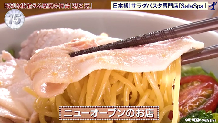 日本初のサラダパスタ専門店を謳う店。メニューは季節限定を含めると約40種類。人気は岩中豚を使った和風豚しゃぶのサラスパ。麺はイタリア「バリラ」の乾麺を使い、野菜たっぷりで、忙しいビジネスパーソンたちに嬉しいお店。