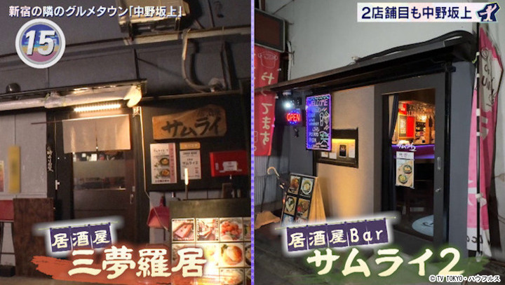 居酒屋「三夢羅居」とバー「サムライ2」、ワインバー「Trio」と姉妹店「Otri」など、中野坂上では、複数の店舗を構えるお店が多い。