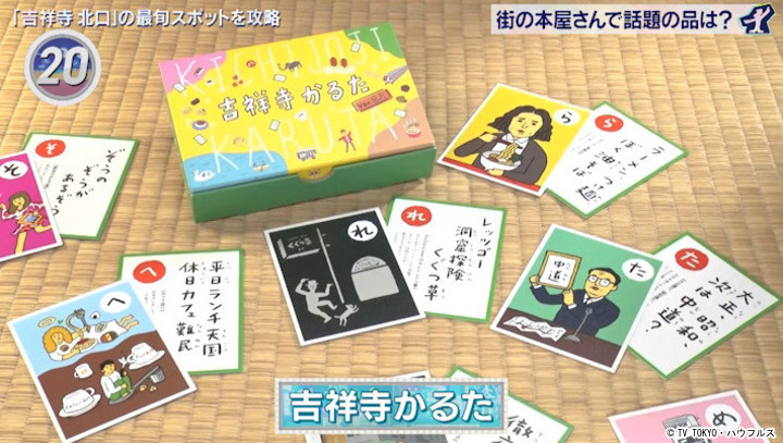 地元の書店などで販売されている吉祥寺の名所やあるあるが満載のご当地カルタ。読み札はSNSで募集しており、住民から地元愛溢れる読み札が集まる。毎年カルタ大会が開かれるほど人気。