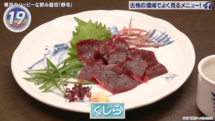 かつて川沿いにあった屋台で鯨肉が売られていたことから、野毛の古株の居酒屋さんでは鯨料理をよく見かける。