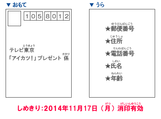 - この応募フォームは「データカードダス アイカツ!」「アイカツ!」「あにてれ アイカツ!」「劇場版アイカツ!」の
