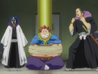 白哉と剣八の戦いは壮絶を極めていた。二人のところへ行こうとする一護だったが、そこに金色疋殺地蔵が現れる。猛毒に飲み込まれていく一護。更には恋次、ルキア、吉良までもが猛毒に侵されていく。更に疋殺地蔵は次の標的を探そうとするが、それを見つけたやちるがなんと疋殺地蔵を追いかけはじめる。楽しそうに追いかけてくるやちるからなんとか逃げようとする疋殺地蔵。そこに二人の保護者(?)でもある剣八とマユリが現れた。