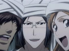 傷をおして、狛村と東仙の戦闘に割って入った檜佐木。檜佐木は、これまで隊長として尊敬していた東仙の目をなんとか覚まそうと戦いに挑んでいく。一方、他の死神たちも、突然現れたヴァイザードに困惑しつつも共同戦線を張ることにする。リサ、ひよ里、そして日番谷の3人はハリベルと、ラブ・ローズはスタークと、そして、ハッチと大前田・砕蜂はバラガンとそれぞれ対峙。エスパーダとの激戦が再び幕を開けた!
