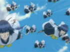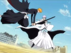 藍染に対して総力戦でかかる、護廷十三隊とヴァイザードたち。だが、全員で攻撃してもなお、藍染は余裕の笑みを崩さない。京楽、砕蜂、日番谷の3人による連携攻撃も藍染の前には意味をなさなかった。もはやこれまでか、と思ったその時、藍染の後ろに平子が現れる。斬魄刀「逆撫」を使い、藍染の五感を逆さにしたのだ。咄嗟の判断を誤った藍染に、ついに日番谷の刃が突き刺さった!