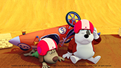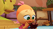 足でこぐゴーカートのレース。プリシラと乗るつもりのカリメロだったが、なんとホップとの一緒の組み合わせでがっかり。一方ジーナは自分の車にこっそりしかけをしていて…