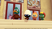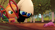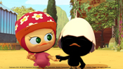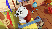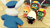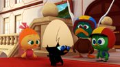 ドヴィンチおじいちゃんの発明品の気球がなくなってしまったカリメロは、急に部屋にやってきて遊び散らかして帰ってしまったスキップとジャンプの仕わざだと思って後をつけていくが…