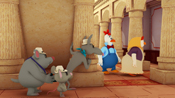 ジュリアーノに改造してもらったカリメロのスケートボード。ところがスピードが出すぎて市役所の中に飛び込んでしまう。あわてて行ってみるとなんと市長の銅像が割れていた…