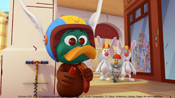 ホップは道に落ちていた紙切れを拾った。それはある式典で市長が話す挨拶の原稿だった。警察官の父親にそれを届けると、ホップ自身で市長に届けるようにと任されてしまう。しかし、スキップとジャンプに原稿を取られ、さらに芝刈り機に巻き込まれバラバラ状態。途方に暮れるホップを見かねたカリメロはあるアイデアを思いつく。
