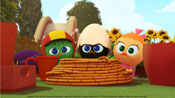 ピーターはプリシラにバラをプレゼントするが、彼女がいきなりその花をハサミで切りおとすのを見てカンカン。思わず、ピーターは飛び出してしまう。ちょうどその時、いとこにからかわれて落ち込むホップと出会い、ピーターは思わず水車小屋の発明品の秘密を彼に話してしまう。ホップはぜひそこに連れて行けと言い出して…