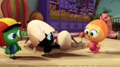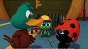 セシラとガレットーニの留守中、カリメロの家に宝物があると勘違いしたココス・ファミリーが泥棒に入った。女装したペッペが注文した花を取りに来たフリをして子守のジジさんの注意をひきつけその間にパッポとパッピが家じゅうを探した。そうこうするうちに秘密の近道を見つけてしまい、パッピがトロッコに乗って水車小屋に向かってしまう。