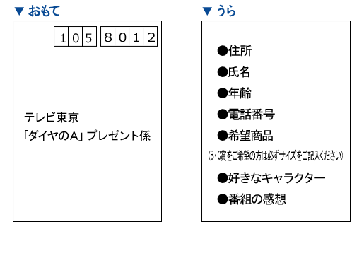 好きなキャラクター、番組の感想を書いてお送りください。