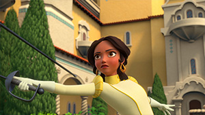 ゲイブとフェンシングの試合で勝って、エレナはご機嫌だった。だが、エレナに怪我をさせないようにとフランシスコに頼まれ、ゲイブがわざと負けていたのだ。それを知ったエレナは、剣術大会に出て自分の腕前を見せようと考える。しかし、フランシスコが反対するに決まっている。そこで、顔を隠して大会に出ることにして、ゲイブにコーチになってもらう。ゲイブは自分と同じハードなトレーニングをエレナに課して、基礎を叩き込む。