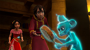 エレナは杖の使い方を練習するが、なかなか上手くいかない。特に炎の攻撃の狙いが定まらず、マテオに怪我をさせそうになる。その時、ズーゾの体の縞模様が光る。他の人の守護霊としての仕事が入ったのだ。全ての人に守護霊がついていることを知ったマテオは、魔法で自分の守護霊を呼び出そうとする。だが、出てきたのはサルの精霊ボボ。ボボは魔法のトウモロコシを盗んで人間の世界に現れ、人間を助けて守護霊になろうとしていた。