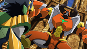 ひとりで危険な任務を行おうとするボルカン所長だったが、その覚悟を知ったGCGの隊員たちが彼に協力することを願い出る。現地に急行した一行は、行く手を阻むガイスト、ジャスティス・スプリガンのクラッシュをハヤトに任せ、地底湖へと急ぐ。その前に今度は、ガイスト、バイト・アシペンサーが出現!さらにはルインの主であるエターナル・オーディーンまでが現れ……。