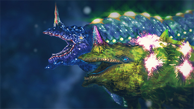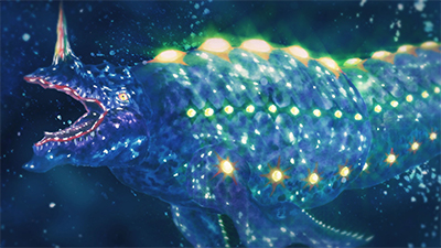 監視対象No.324「深海獣妃クィンデプス」について、小林丸兆治博士より報告。太平洋の海溝にてキングデプスと遭遇した探査艇が立て続けに怪獣に遭遇。2頭は互いの発光器官を交互に光らせ、まるでダンスのように回遊を始め…。