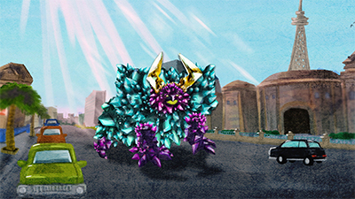 監視対象No.388「水晶怪獣クリスタピリス」について、ニキータ・タルコフスキー博士より報告。北米大陸の歓楽街に怪獣が出現。無害な結晶状の怪獣と思われたが、太陽が上ると状況は一変し…。