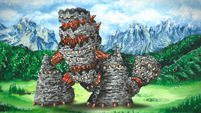 監視対象No.108「城壁怪獣ウォルガモス」について、ギレルモ・マルケス博士より報告。ヨーロッパの閑静な山間部に局所的な地震があり、発生源は古い城であると判明。この古城は建造物ではなく…。