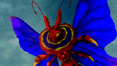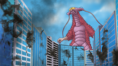 監視対象No.111「暴風蝶ヴォーモルフォ」について、ケニー御子柴博士より報告。羽ばたきによって竜巻を発生させ街を壊滅させる蝶型の怪獣。対怪獣災害用地下避難シェルターがない時代、怪獣からの人々の避難は困難を極めた…。