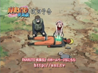 ダンゾウの目的が「大蛇丸と組んでの第二の木ノ葉崩し」と知り戦慄するナルト達。暴走の後遺症が残るナルトの身を案じるサクラだが「大蛇丸相手にチャンスは二度ない」とのヤマトの説得を受け、早速追跡を開始する。しかしサクラの脱落により程なく追跡休止を余儀なくされるカカシ班。実は九尾化したナルトから受けた傷は思いのほかサクラを苦しめていたのだ。一方、分身ヤマトの追尾に気付いた大蛇丸一行は追っ手をまくために、同行のサイを使ったある手段に出るが――。