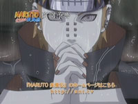 蝦蟇のガマ五郎の腹中に隠れ、雨隠れへの潜入を果たす自来也。早速情報収集を開始する自来也だが、里内に内戦の影は見えない。里人達は前の里長・山椒魚の半蔵の影が一切払拭された街でペインを長とあがめていた。違和感を覚え、現在の半蔵の所在と更なるペインの情報を求める自来也は、下忍二人を拘束し、尋問する。結果、半蔵が一族郎党共々抹殺された事を知るが――。しかし自来也の動向は、既に雨隠れ新里長である暁の首領・ペインに察知されていた。