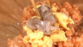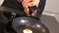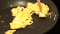 素早くかき混ぜてスクランブルエッグを作る。