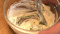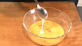 卵にコンデンスミルクを入れて味にコクを出す。