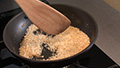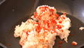 ⑤熱したフライパンにご飯を半分入れ、