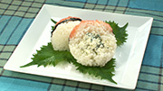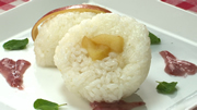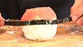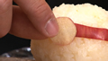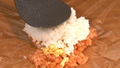 ⑧具の上にさらにご飯を乗せ、丸い形になるように握る。