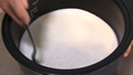 米2合に牛乳と砂糖を入れ、よく混ぜる。